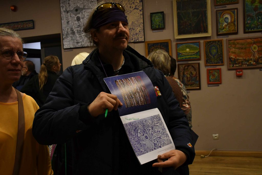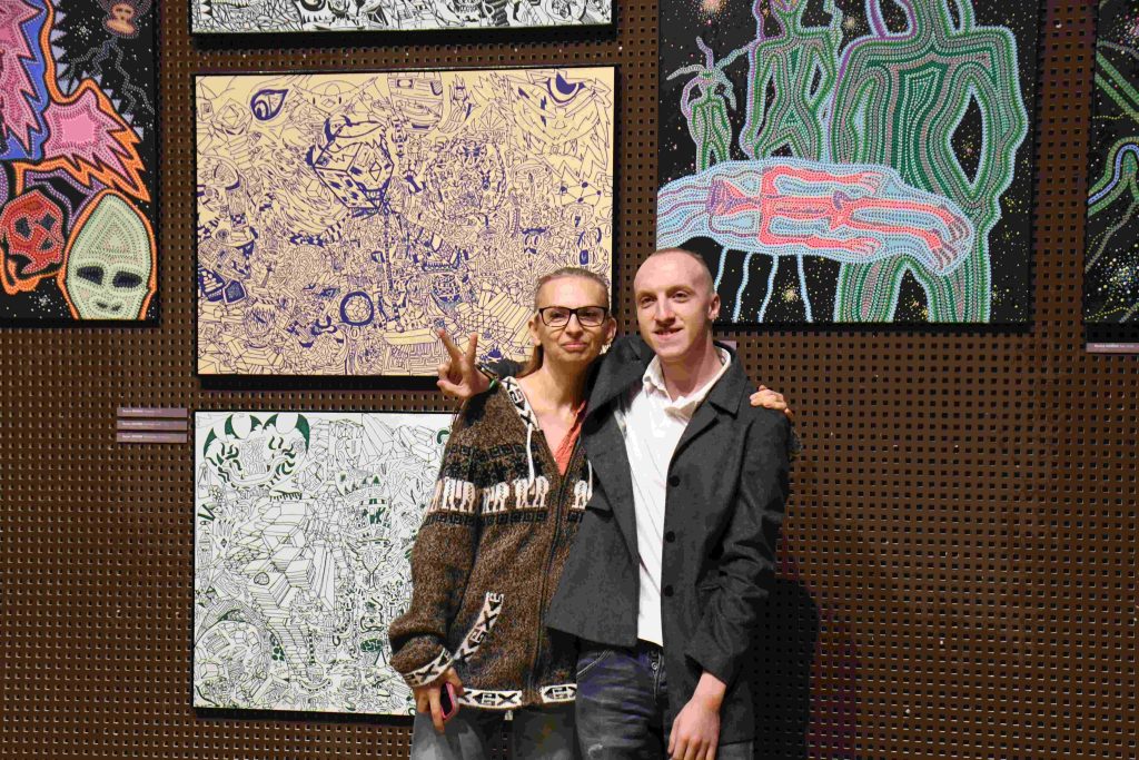Kacper Zieliński najmłodszy z trójki artystów rozwija swoja twórczość w Pracowni STO5 Specjalnego Ośrodka Szkolno-Wychowawczego w Skierniewicach. To rysownik wizjoner o niezwykle bogatej wyobraźni. Pracuje w skupieniu, odgrodzony od rzeczywistości, odkrywa przed nami bezkres wewnętrznego świata. Zieliński zabiera nas do najodleglejszych, nieodkrytych miejsc w kosmosie swojej wyobraźni o tajemniczych zaszyfrowanych nazwach i niezwykłych formach. Tworzy intuicyjnie, powołuje do życia fikcyjne, fantastyczne światy z drobiazgowo odtworzonymi detalami, szczelnie wypełniające graficzną strukturą duże formaty, rozszerza graficzny wszechświat aż do granic wyznaczonych przez karton. Zbliżając się do rysunku stopniowo odkrywamy negatywy gwiaździstego nieba, konstelacje ciekawych form, bogactwo przejawów życia i misternych detali.