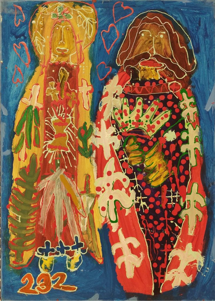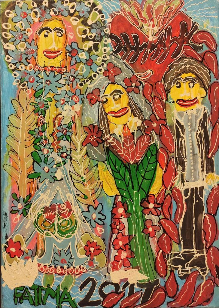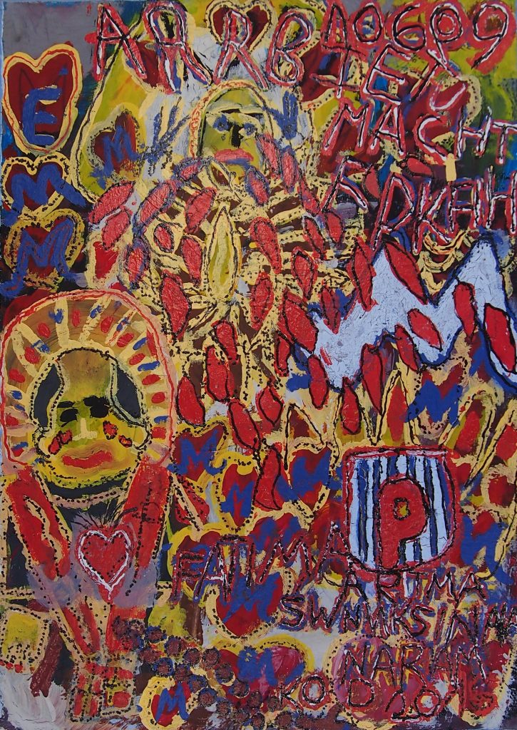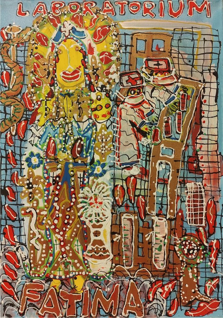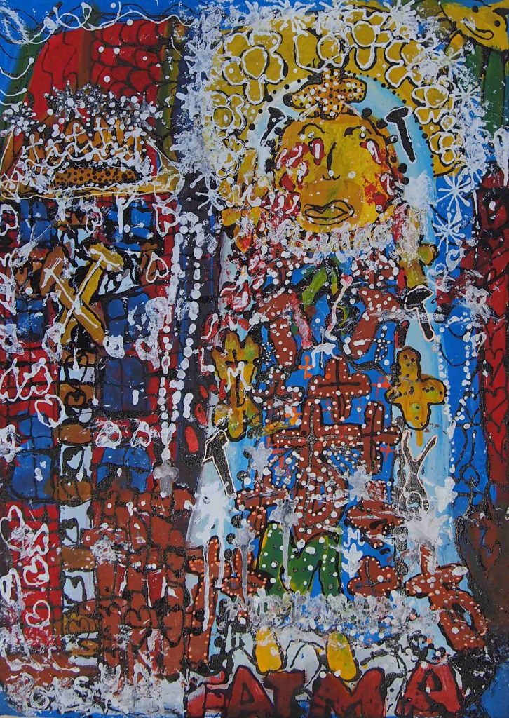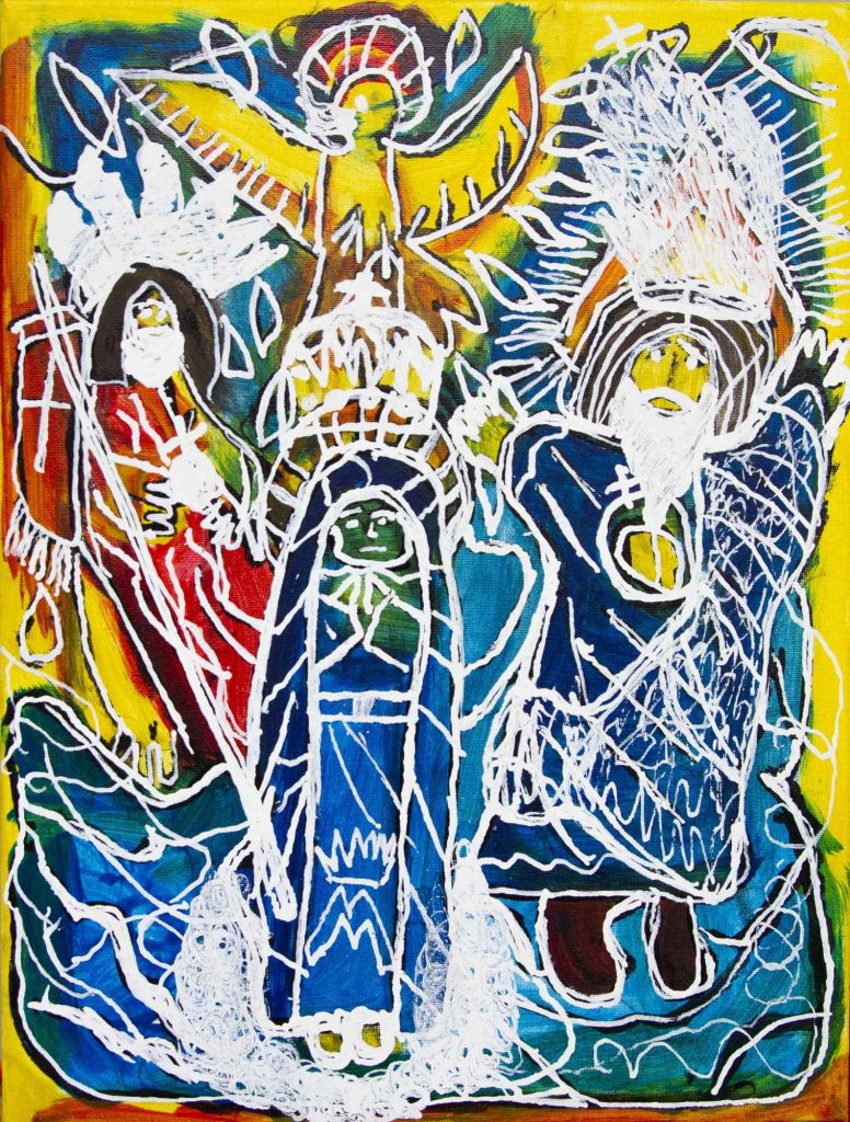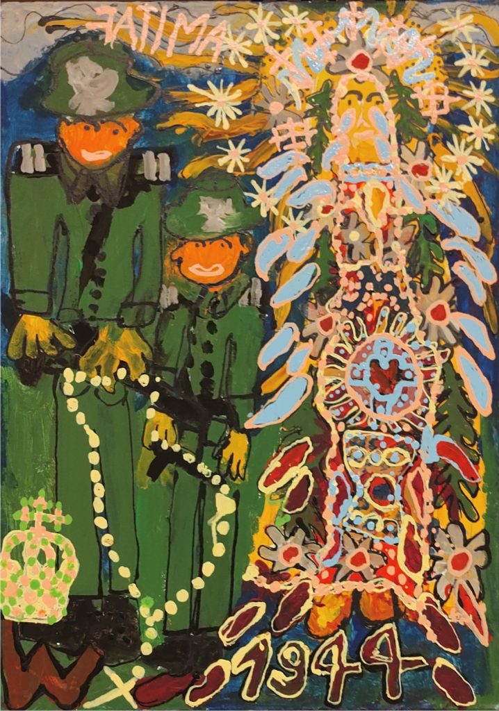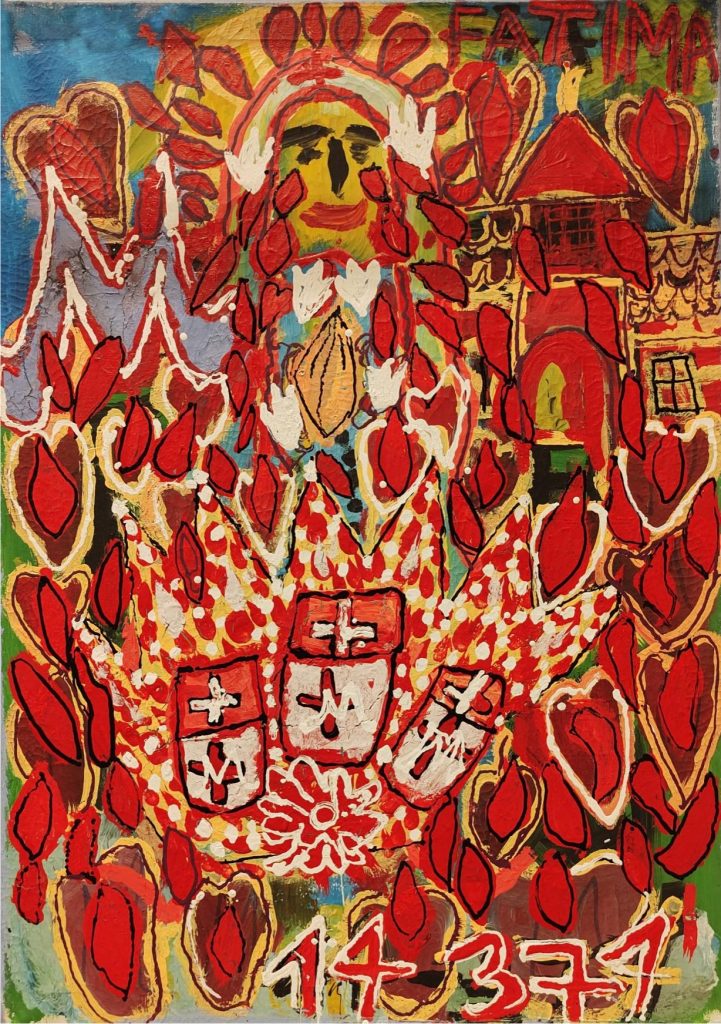 Świat Marcina jest głęboko religijny. Zaczynał od miedzianego drutu, który w jego rękach zamieniał się w korony Matki Boskiej. Sztandary własnoręcznie projektowane i wyszywane przywodzą na myśl dzieła Hasiora. W malarstwie akrylowym na płótnie w dalszym ciągu głównym tematem jest religia. Cykl „ Matka Boska w odsłonach” mimo podobnej kompozycji, posiada ogromne walory kolorystyczne. Horror vacui – czyli tendencja zapełniania całej powierzchni obrazu, bez pustego tła, tak charakterystyczna dla sztuki Celtów, Indian , czy Islamu jest dla niego naturalna, zakodowana.