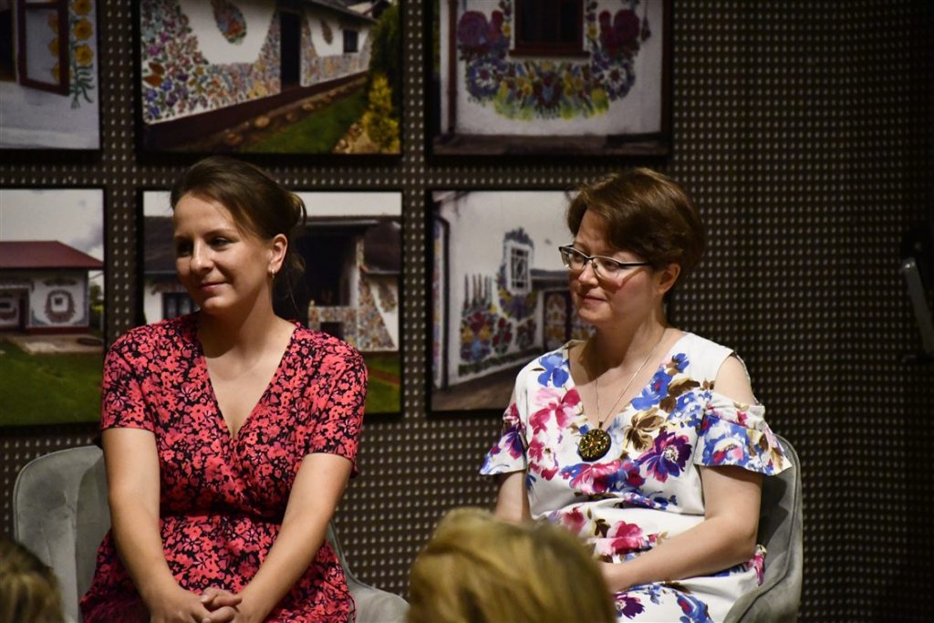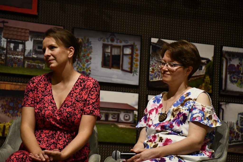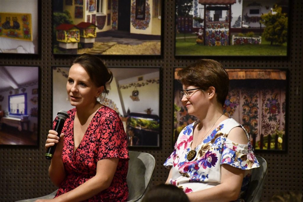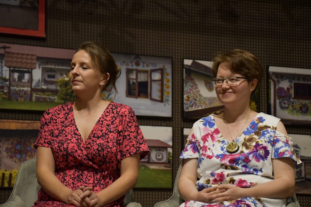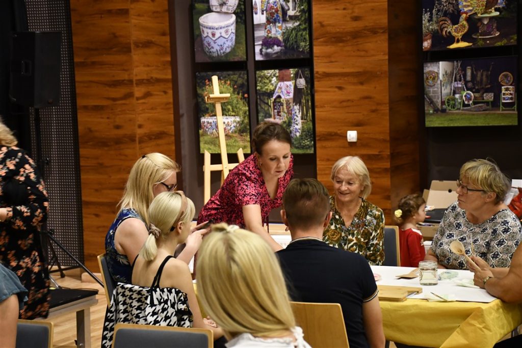 Zaprosiliśmy również zalipiańskie malarki Ewelinę Sokołowską i Marie Pikul które poprowadziły warsztaty plastyczne, dzieląc się sztuką malowania tradycyjnych motywów kwiatowych.