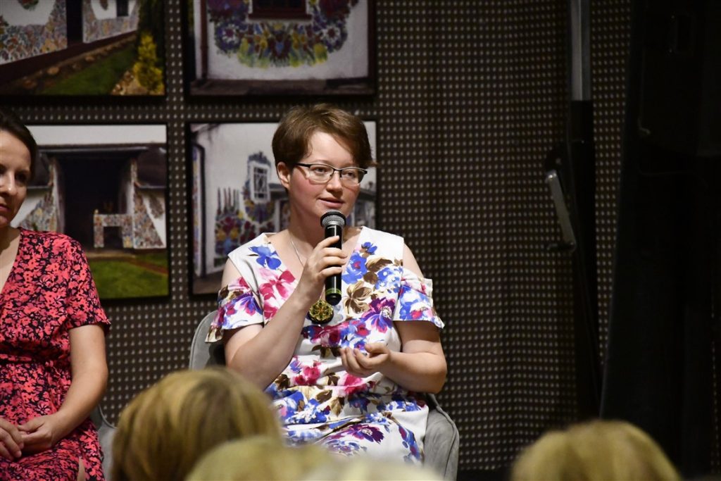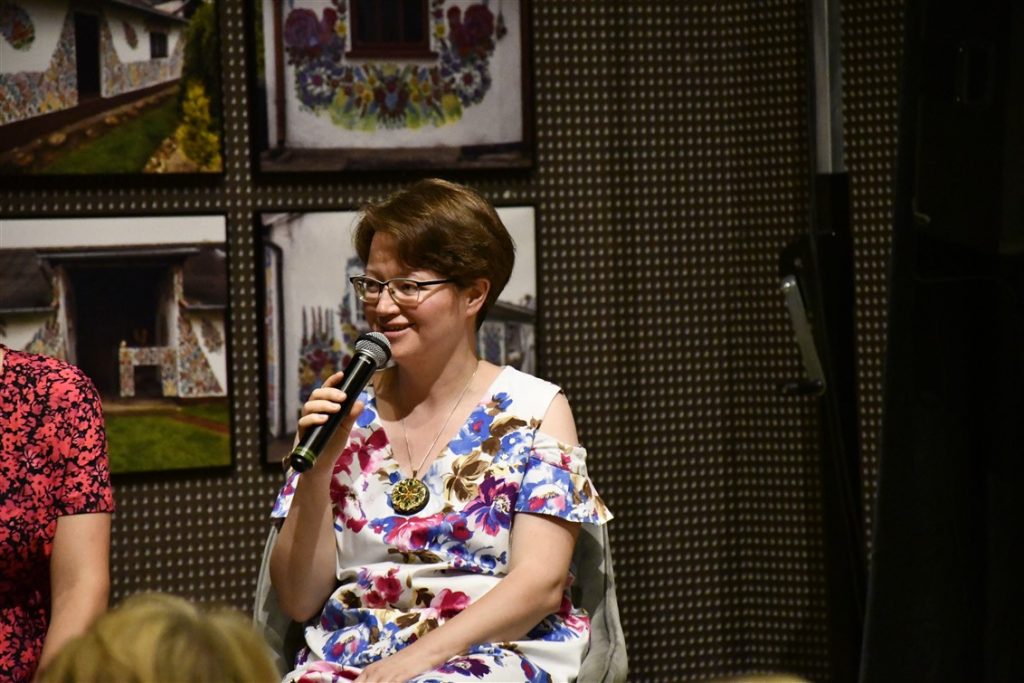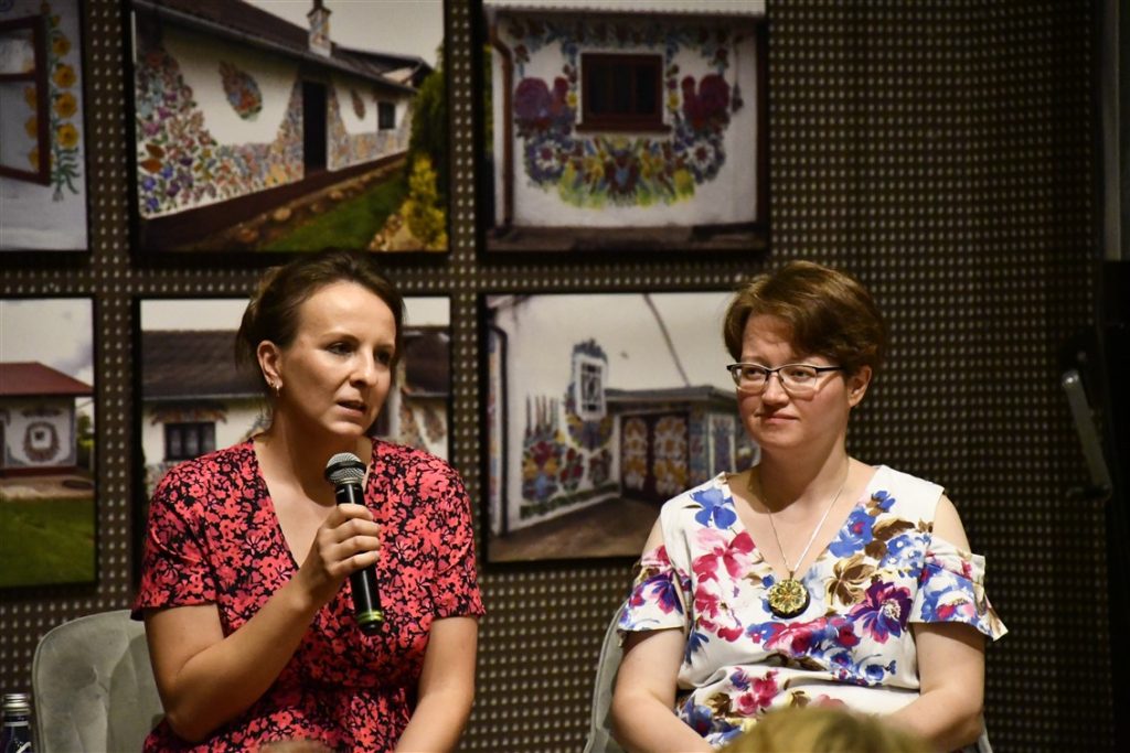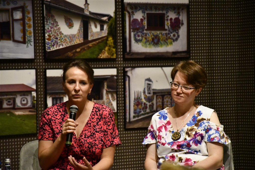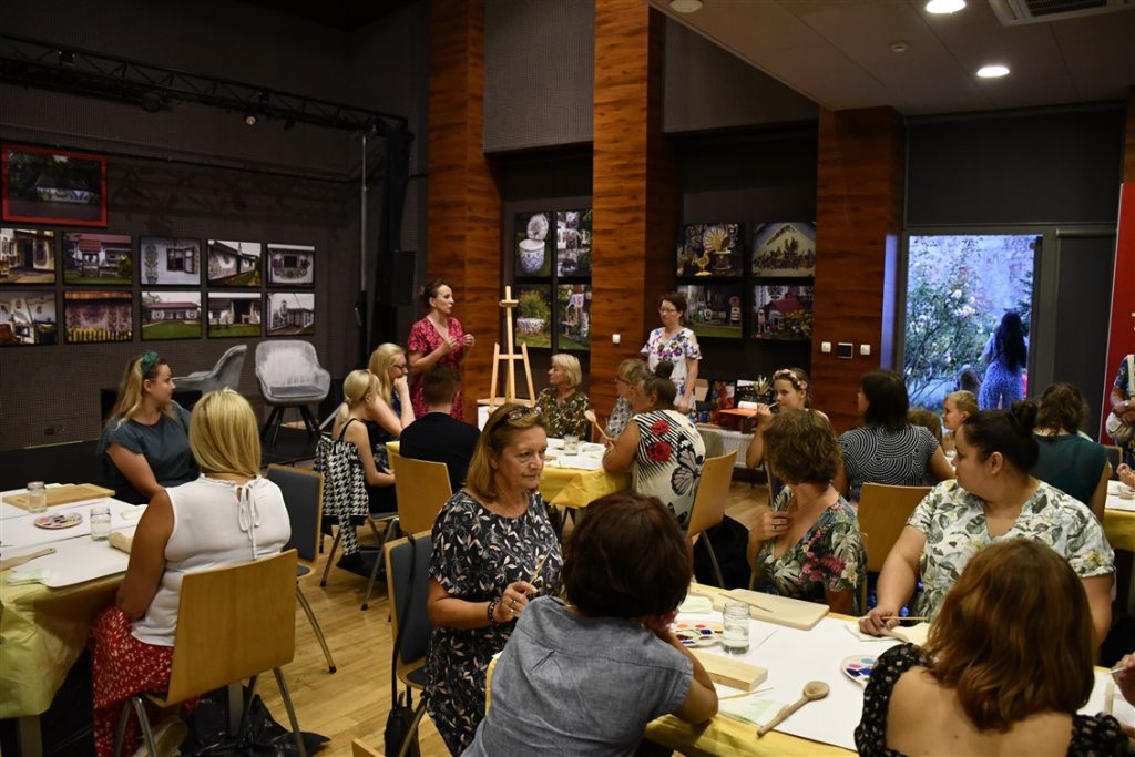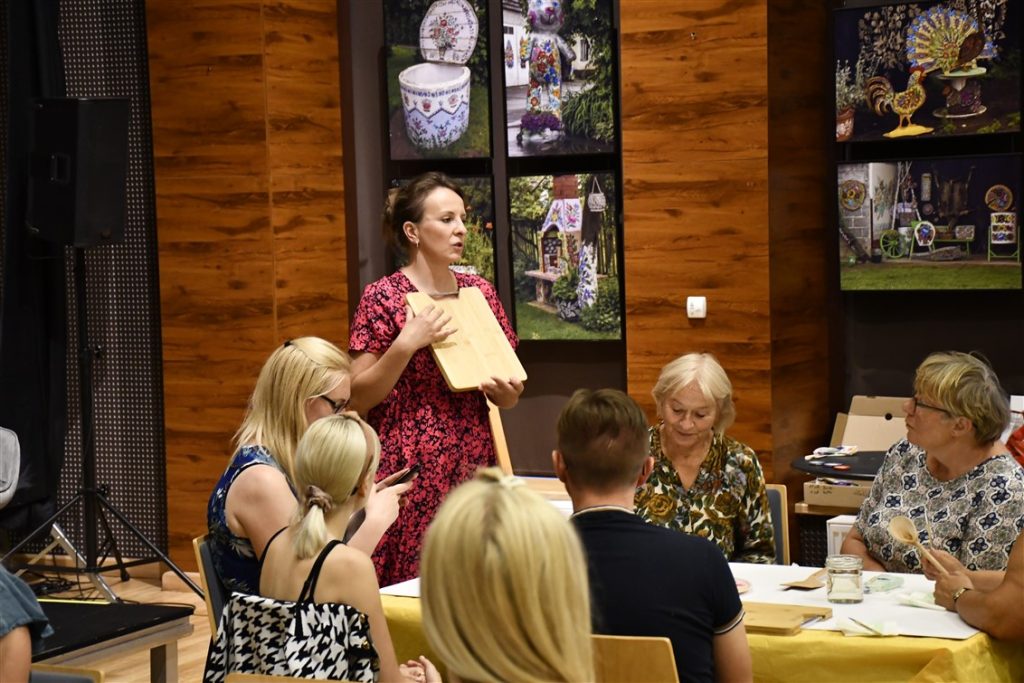 Zaprosiliśmy również zalipiańskie malarki Ewelinę Sokołowską i Marie Pikul które poprowadziły warsztaty plastyczne, dzieląc się sztuką malowania tradycyjnych motywów kwiatowych.